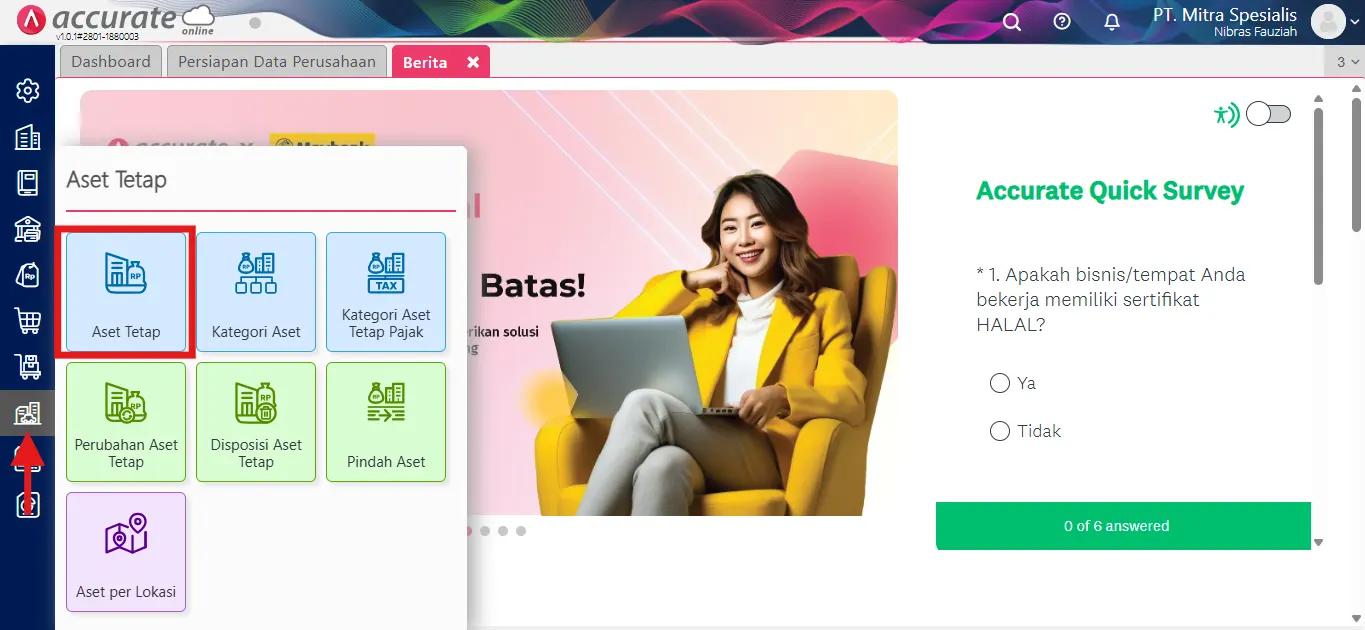 - Akses menu Aset tetap dan pilih Aset tetap.
